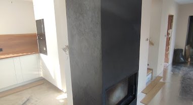 🔥 Realizacja kominka w tynku dekoracyjnym – kolor czarny 🔥